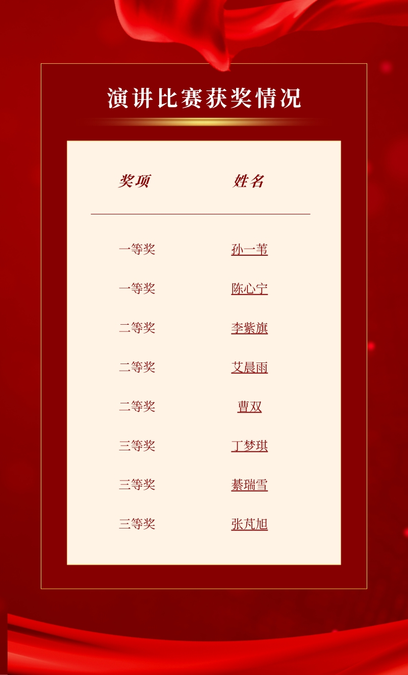 现场评委从主题契合度、语言表达、现场感染力等维度综合评审,最终评选出一等奖2名、二等奖三等奖各3名。
