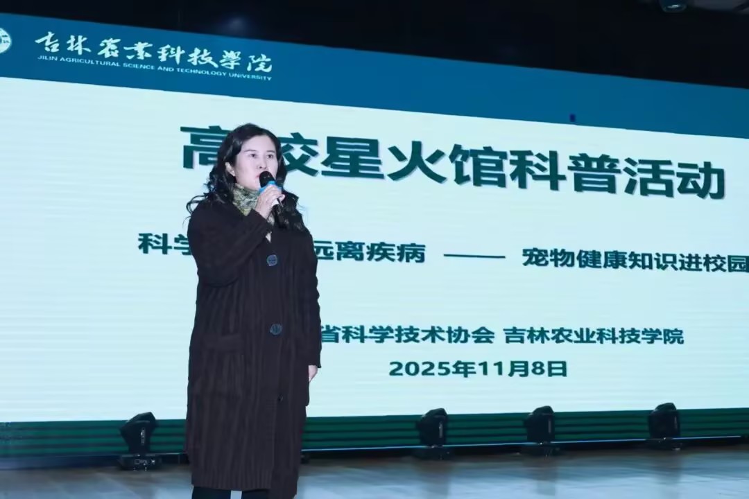 为践行“同一健康”理念,普及科学养宠知识,11月8日,由吉林省科学技术协会联合吉林农业科技学院共同主办的“科学护宠 远离疾病”主题讲座在左家校区大学生活动中心举办。讲座由动物科技学院组织,邀请派美特吉农禾丰动物医院技术院长王硕参加,学院院长沙万里、党总支副书记卢广林、学院实验中心主任唐琦超、全体辅导员教师出席。会议由学院副院长何玉华主持。