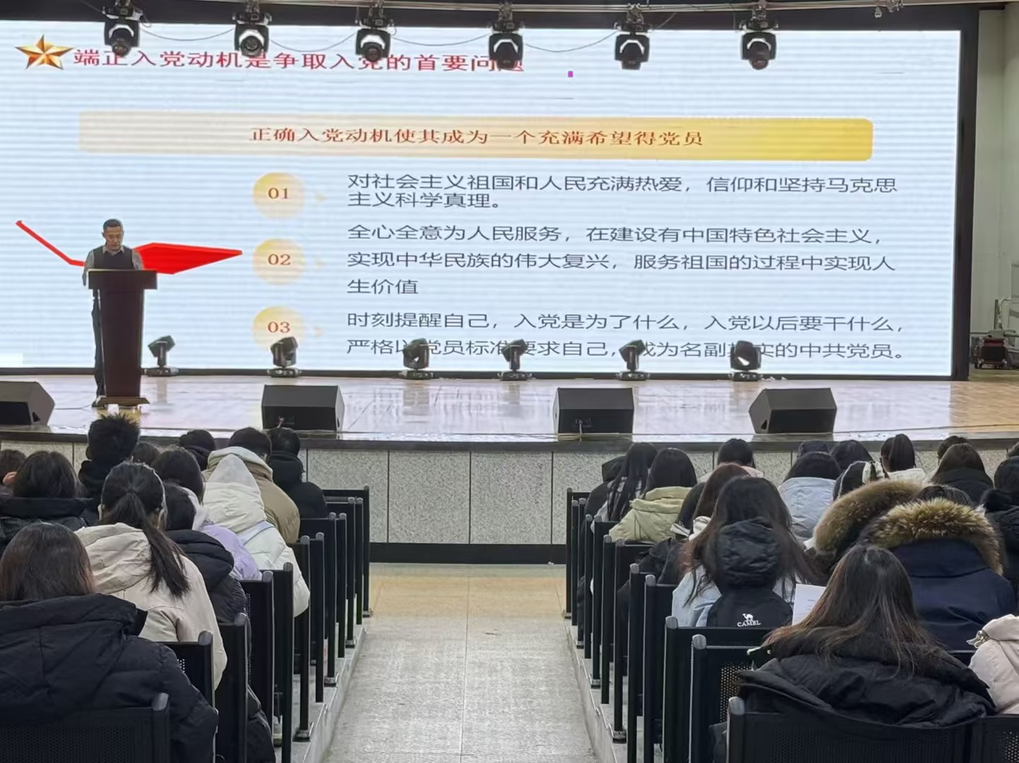 为加强党员队伍建设,引导青年学子坚定理想信念、锤炼党性修养,12月3日,学院在左家校区大学生活动中心举办初级党校暨入党积极分子培训开班仪式。学院党总支书记王奔担任主讲人,全体辅导员及全体入党积极分子参加。