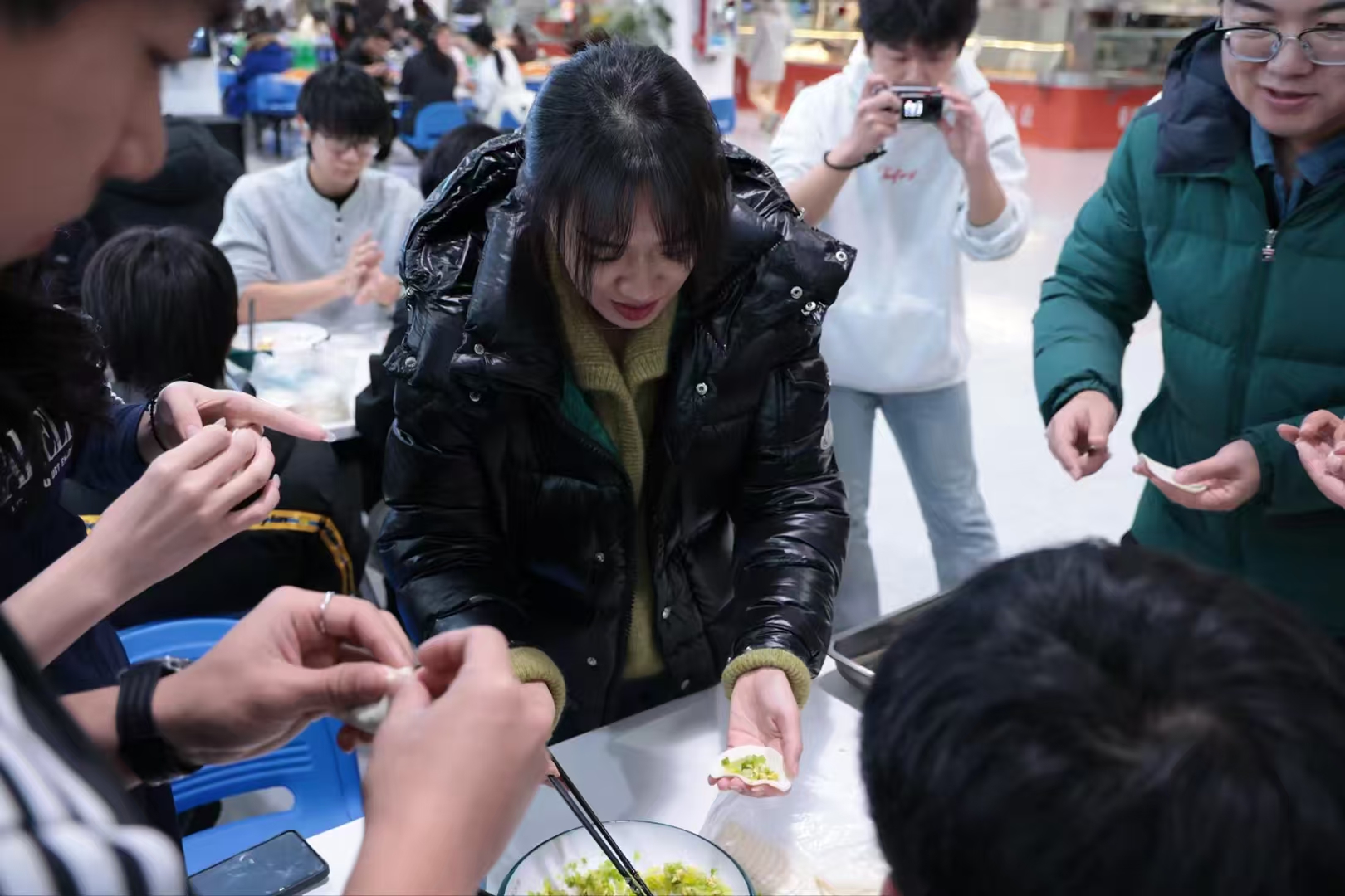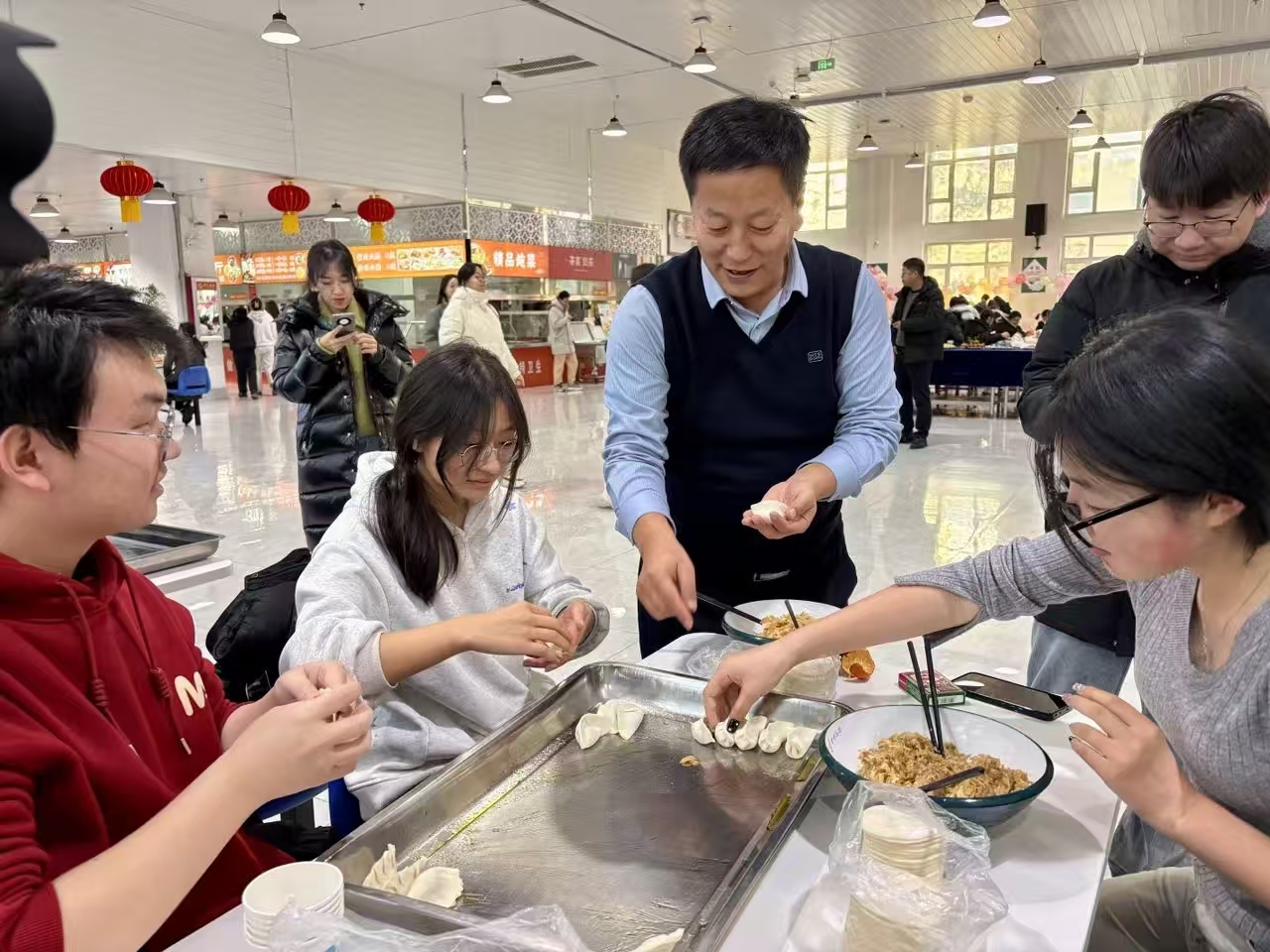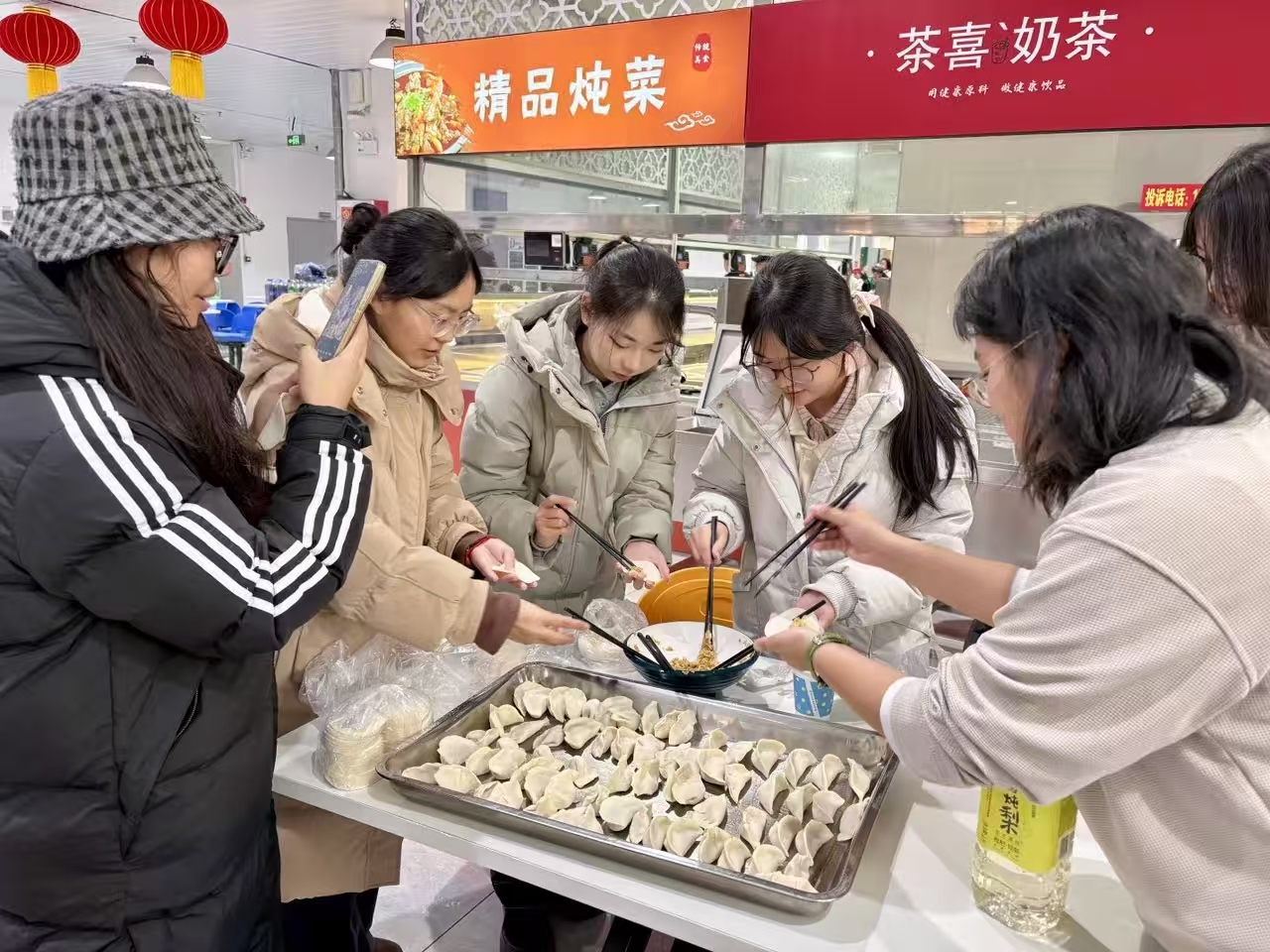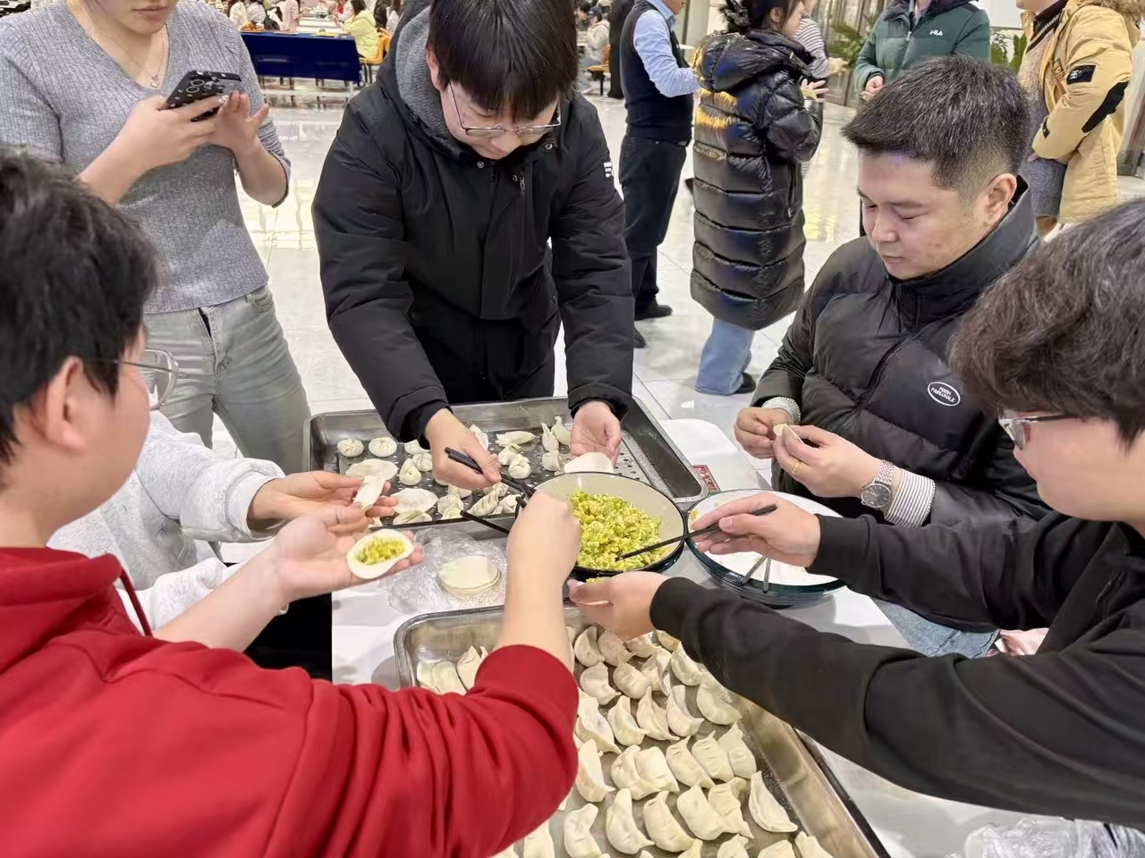 晚会以一场热闹的包饺子活动启幕。师生共同协作,手法娴熟的老师手把手传授技巧,初学的同学认真模仿,天南海北的饺子包法成了趣味话题。满桌的饺子不仅飘着香气,更让留校学子感受到家的温暖与团圆。