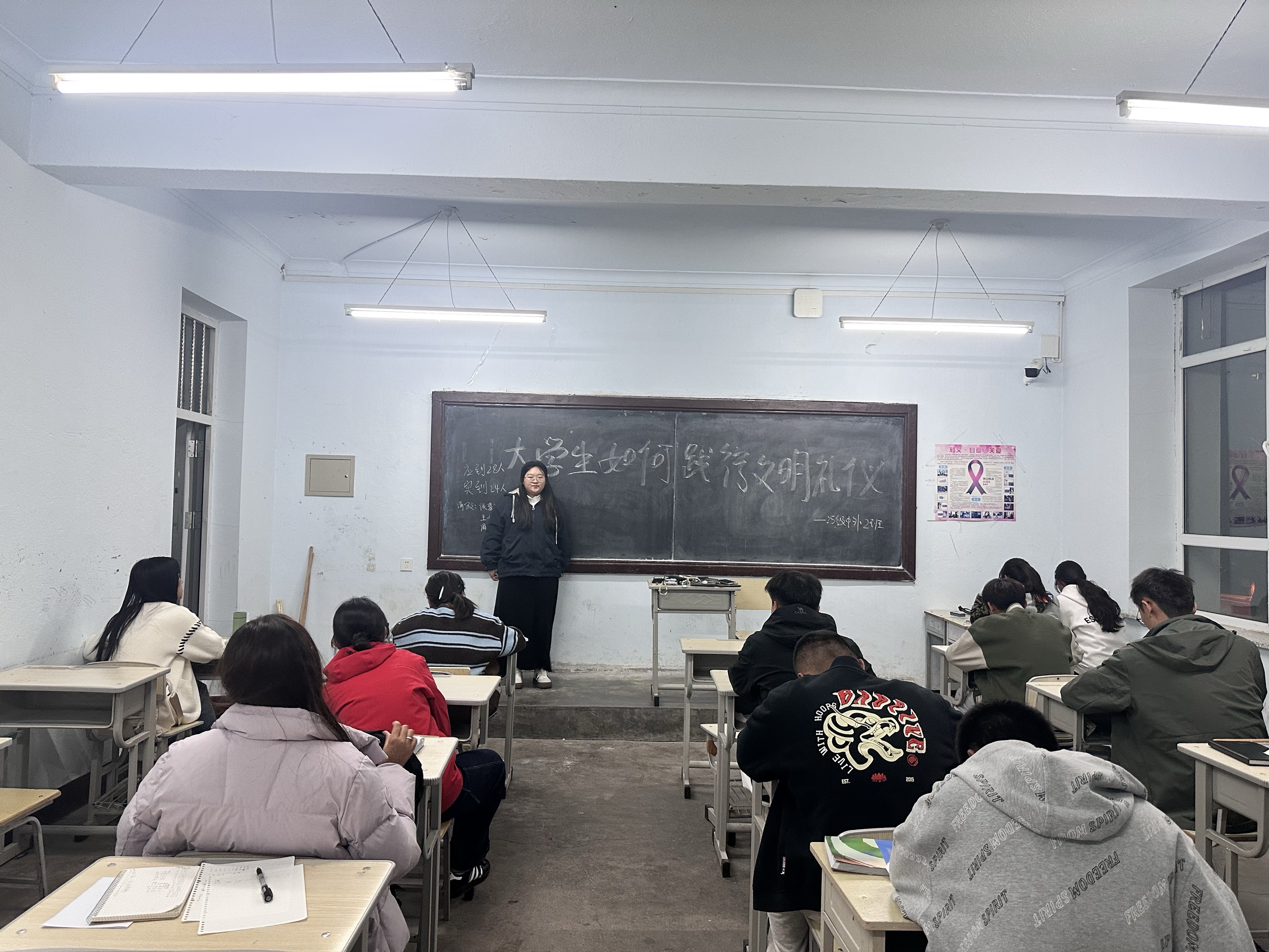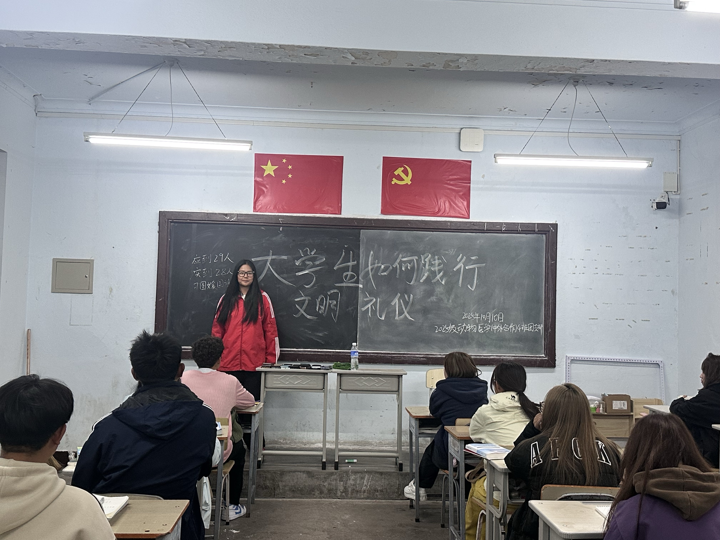为强化青年思想引领,切实将文明礼仪教育融入团日活动核心环节,10月9日,学院团委组织各班团支部在至善楼教室开展“大学生如何践行文明礼仪”主题团日活动,全体团员参加。