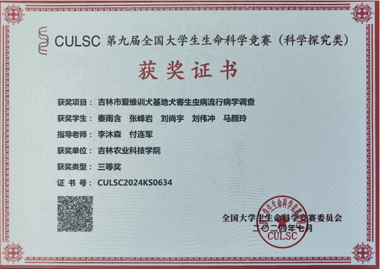 秦雨含,女,2022级动植物检疫班,入党积极分子,曾任动物寄生虫协会会长、动物解剖协会成员